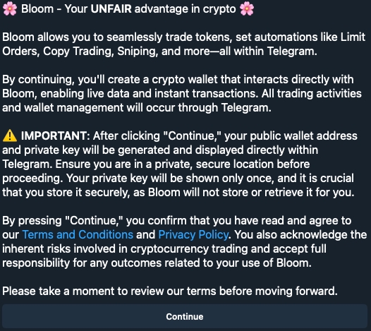 After completing the initial steps outlined above, simply tap 🚀 Start Trading to enjoy Bloom full potential.